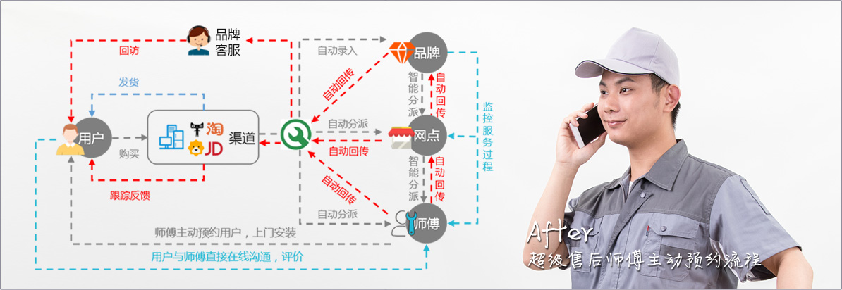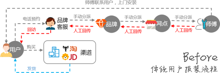 与电商平台互联,消费者购买电器后,直接对接订单,实现师傅主动预约