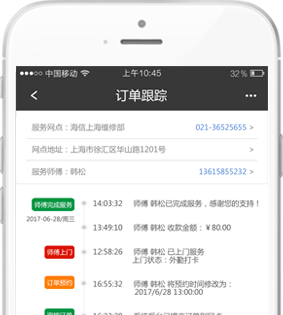 服务订单全流程各节点信息实时回传