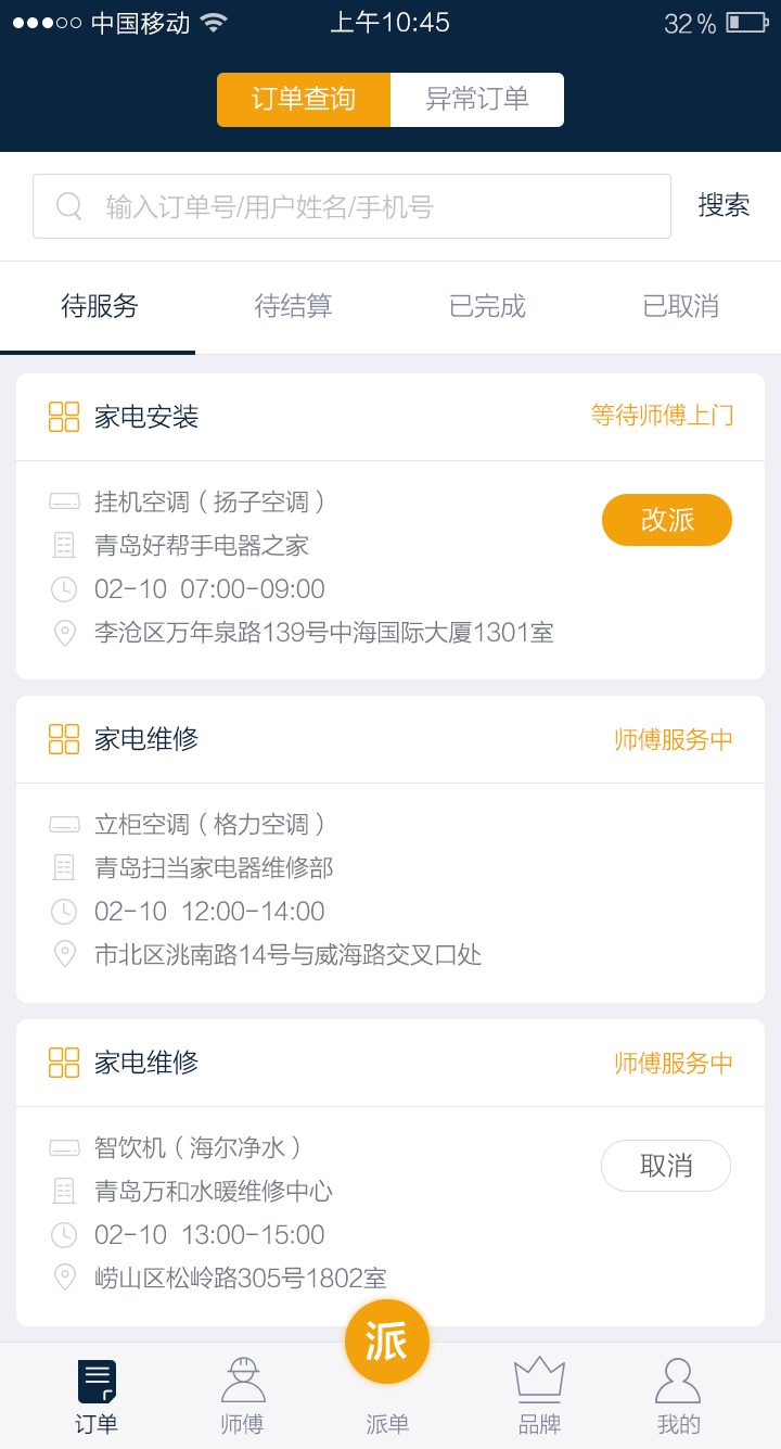 与电商平台互联,消费者购买电器后,直接对接订单,实现师傅主动预约