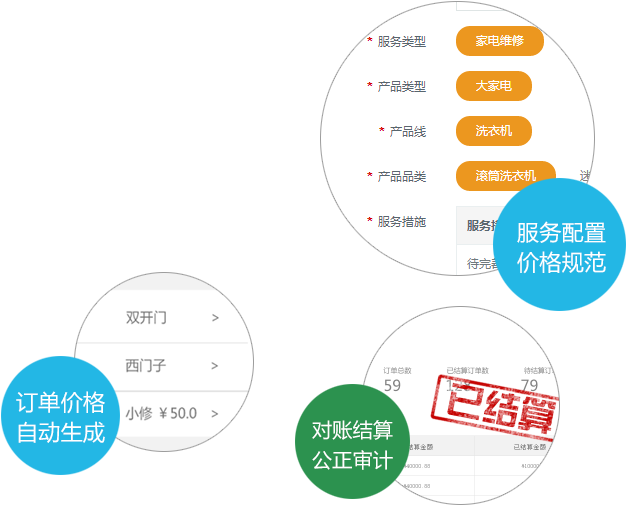 备件价格、服务措施等收费项目,统一设置,明码标价