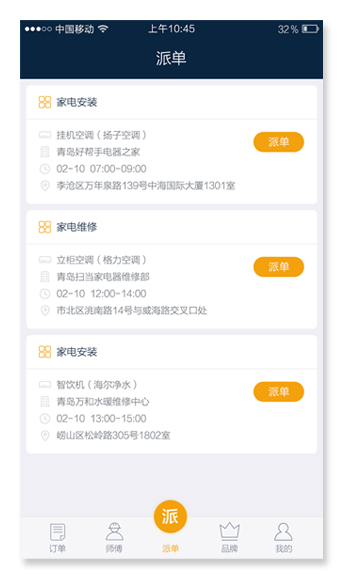记录师傅打卡考勤,记录师傅工单与服务时间